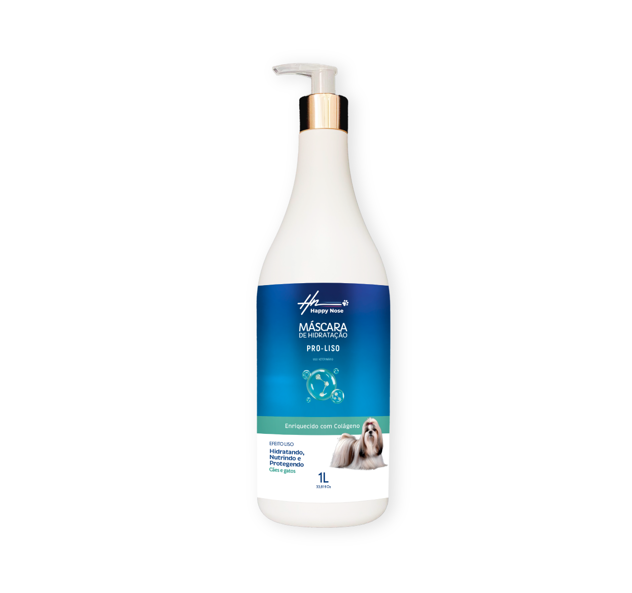 Máscara Pro Liso Happy Nose Linha Premium. Confere ao fio realinhamento e lubrificação. Diminui a estática reduzindo o frizz e melhora a penteabilidade do fio seco ou úmido. Promove brilho e maciez reduzindo o tempo de secagem. Com Blend que confere hidratação e mantém a pelagem com efeito liso. Rico em polímero de algas, Poliquatérnio e silicone. Age neutralizando a carga eletrostática, condicionando e reduzindo o volume. Formação de filme hidratante, protetor, permeável. Não mascara o fio.